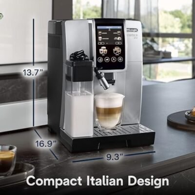 The integrated conical burr grinder ensures every cup is brewed from freshly ground beans for an authentic Italian coffee experience